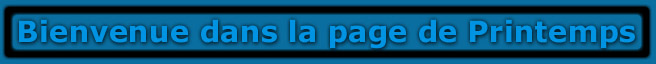 Bienvenue ! Si vous ne savez en quoi consiste cette page allez vous informer sur le canal #Printemps d'un serveur IRC d'Undernet. Eh ouiiiiii, la page marche pas mal ! Je suis fier de vous les amis ^_^ et merci de votre soutien, a part pour les commentaires avec les photos :P Mangaman |